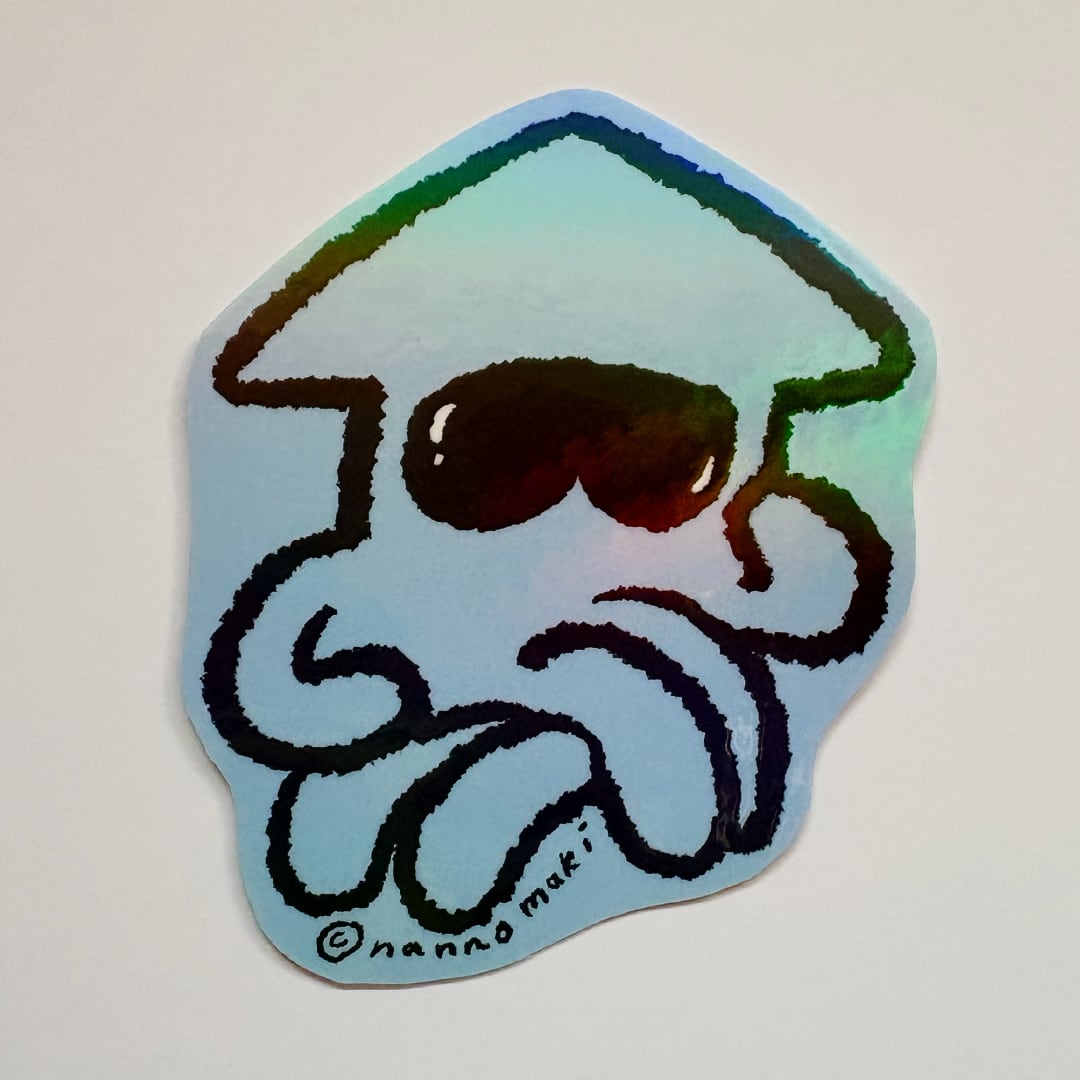 ステッカー《いか/ブルー》/ホログラムPP レインボー