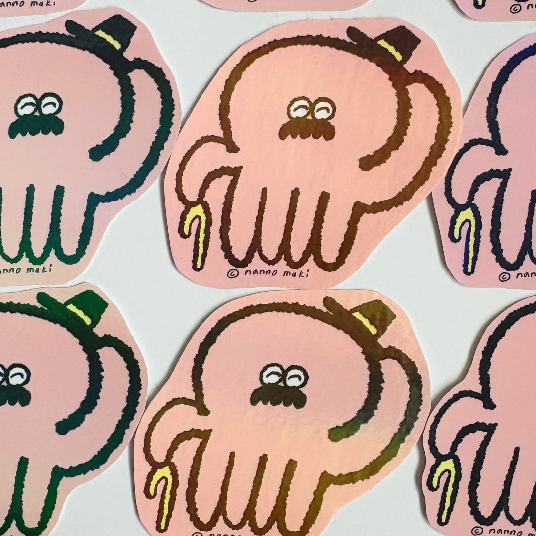 ステッカー《タコおじさん》/ホログラムPP レインボー